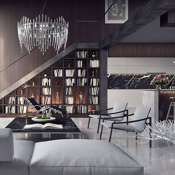 Создать особую атмосферу в стиле лаунж позволяют элементы промышленного антуража и наличие грубой фактуры в отделке. Дополнить интерьер частичками промышленных зданий помогают: неприкрытая кирпичная кладка, электрические провода, выделяющиеся газовые и водопроводные трубы, балки, вентиляционные шахты, заводские приспособления. А сделать обстановку более комфортной и практичной позволяют элементы современных разработок: приятный на ощупь текстиль, мягкая мебель, зеркала, стильный металл.