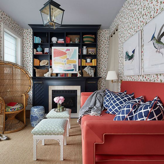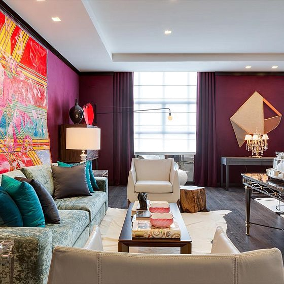 Цветовые контрасты строятся на сочетании ярких цветов, а не объединении светлых и темных оттенков одного цвета. Поэтому интерьер получается многогранным, наполненным, глубоким.