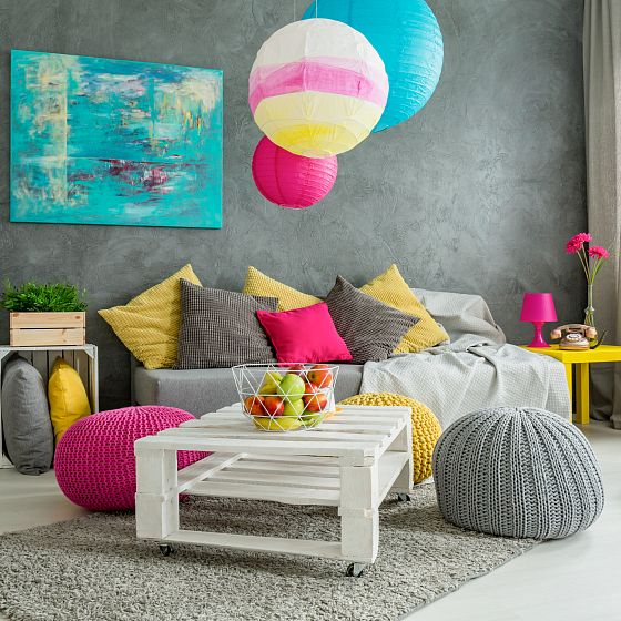 Добавить обстановке аристократичности, индивидуальности и легкий налет молодежного куража позволяют штрихи в виде предметов, связанных с современными субкультурами или поп-артом. Для оформления комнаты можно использовать настенное граффити, постеры, плакаты, яркие наклейки или портреты выдающихся личностей. В стиль фьюжн также отлично вписываются живые комнатные растения, которые добавляют обстановке красок, сочности и колорита. Желательно, чтобы цветы были из разных стран или сортов: орхидея, кактус, фикус, бонсай и т.д. Завершающий штрих обстановке обеспечивает правильное освещение: рекомендуется использовать точечные светильники и сделать свет мягким и рассеянным. Примеры декора и предметов интерьера в стиле фьюжн, которые помогут дополнить вашу обстановку: