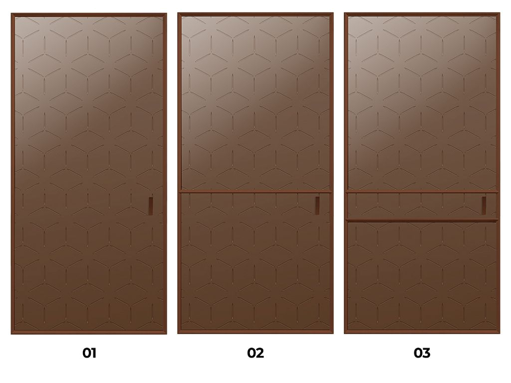 Перегородки Steel изготавливаются в 3 вариантах «створок»: с цельным остеклением или разделением на две или три «зоны». Они доступны к заказу с высотой от 1,5 до 3 метров, оснащены стеклом триплекс 4+4 мм, а каркас покрывается эмалью с оттенком на ваш выбор.