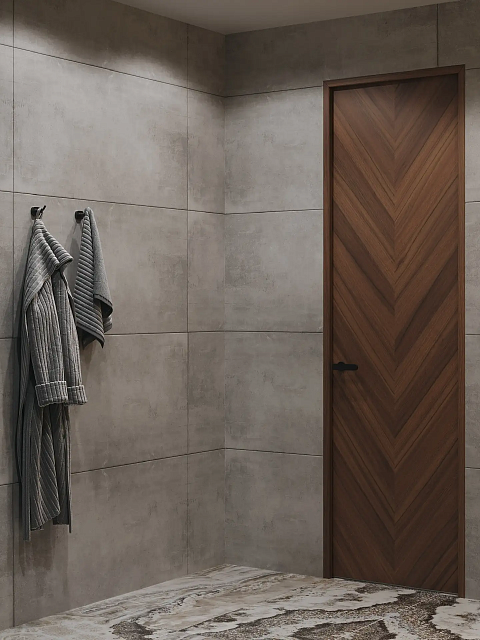 Дизайн-проект «Журавли» основан на гармонии с природой и современным стилем. Основная философия — создавать пространство лёгкости, свободы и уюта с использованием натуральных материалов и сдержанных цветовых акцентов. В проекте применены двери фабрики Терем, модель Unit в шпоне, которые стали стильным и выразительным элементом интерьера. Их диагональная текстура добавляет динамики и подчёркивает индивидуальность пространства.